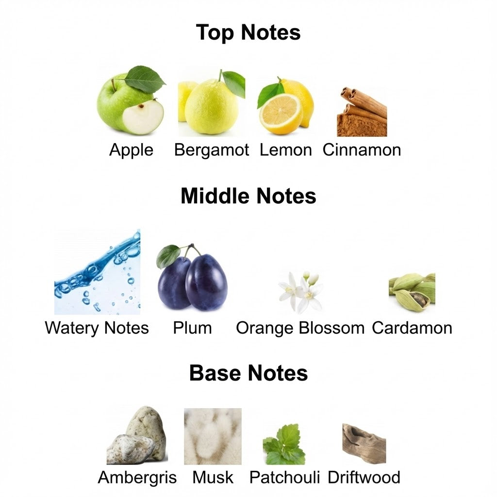 Scent Profile: Opens with a crisp, watery freshness that feels instantly uplifting and vibrant. As it develops, subtle sweetness and aromatic depth add balance and appeal, keeping the scent smooth and addictive. The dry down is clean, musky, and slightly woody, leaving a fresh, long-lasting trail that feels sporty, modern, and undeniably masculine.